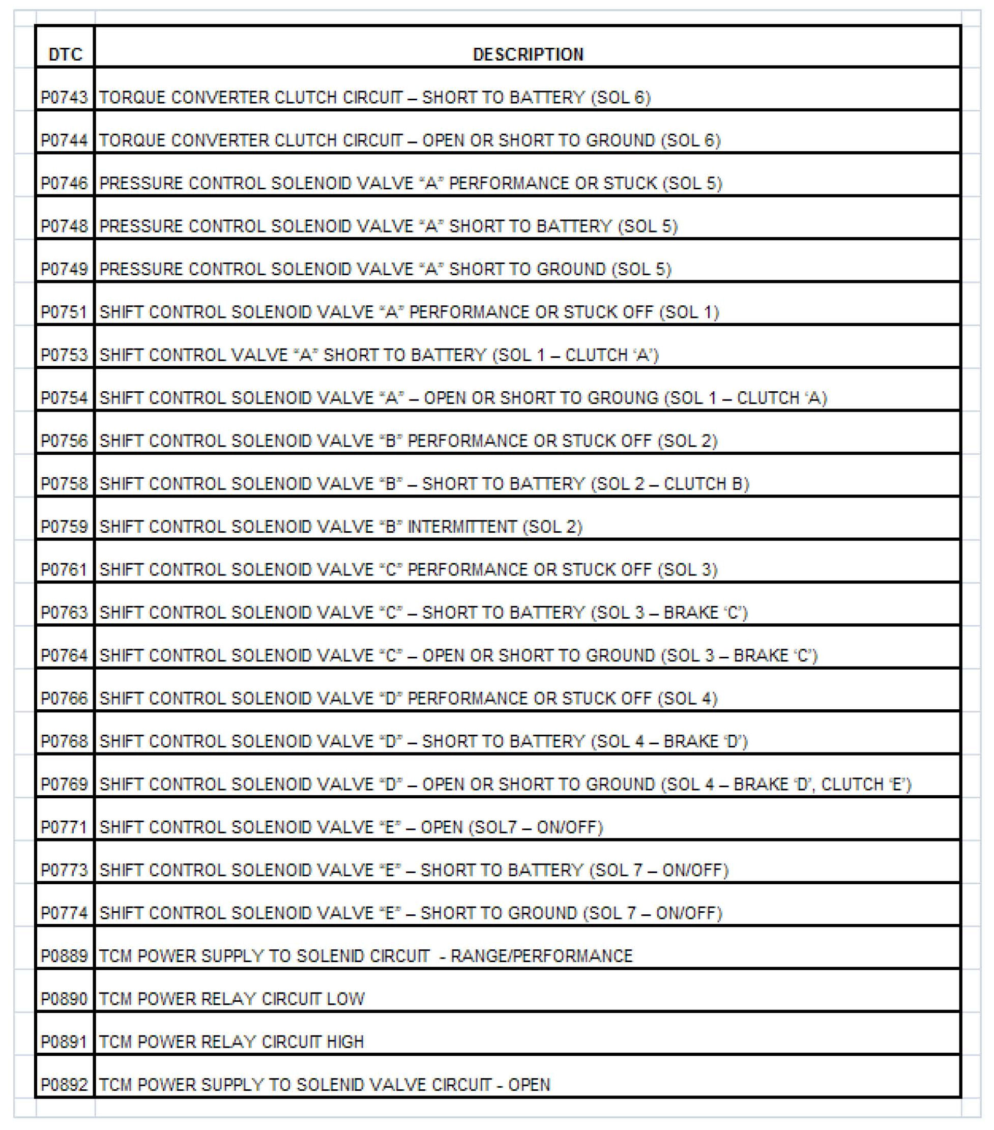 SOLENOID DIAGNOSTIC TROUBLE CODES -