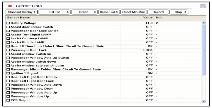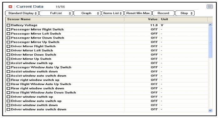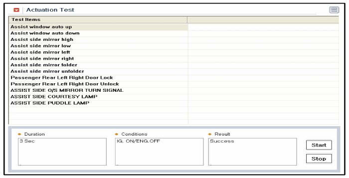 4. To check the input value of power window switch in force mode, select option "ACTUATION TEST".