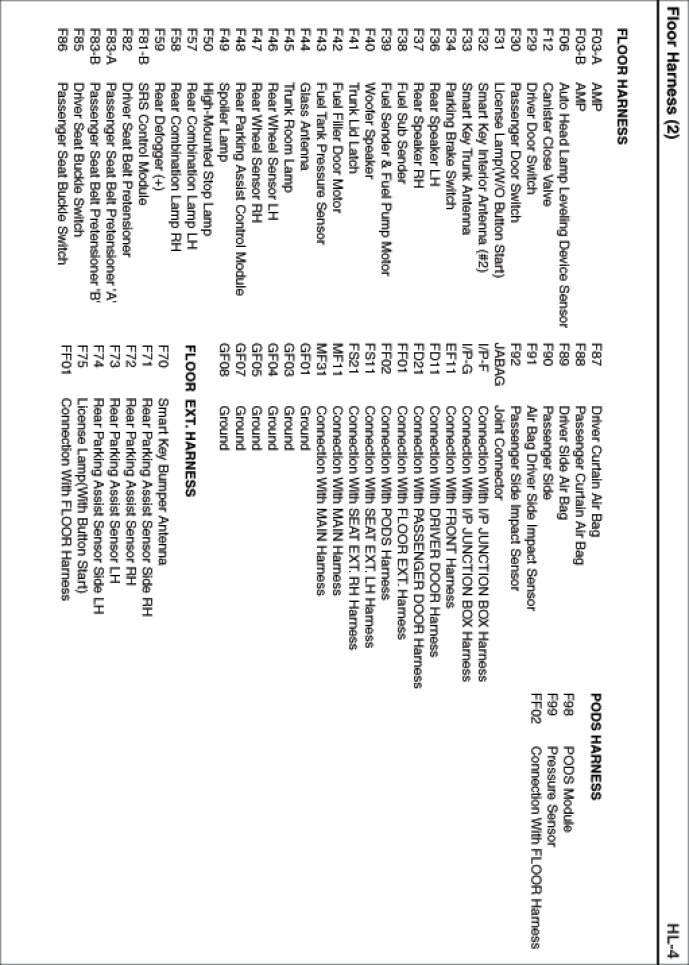 Floor Harness Index:
