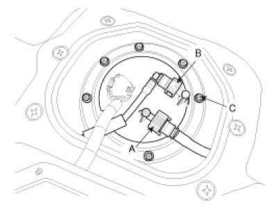 3. Remove the fuel pump from the fuel tank after removing the installation bolts (C).