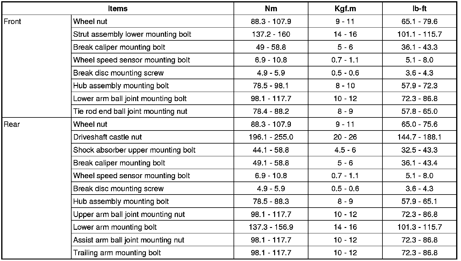 Tightening Torque
