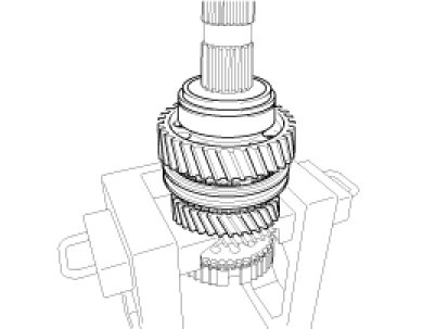 9. Remove the 5&6th synchronizer hub&sleeve assembly, synchronizer ring and 6th gear assembly altogether by using press on the 6th clutch gear.