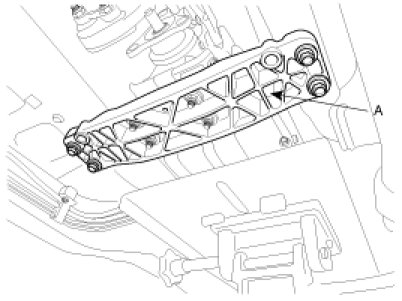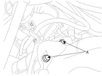10. After supporting the transmission assembly with a jack, remove the crossmember (A) by removing the bolts(4ea).