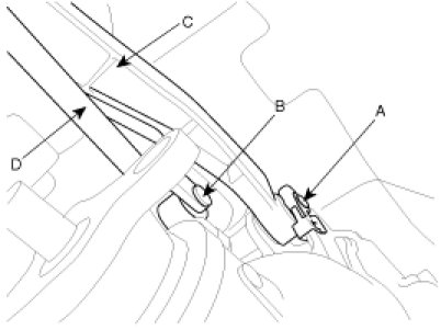 8. Install the base bracket (C) and select rod (D) to the transmission with clips (A-2ea) and snap pin (B).