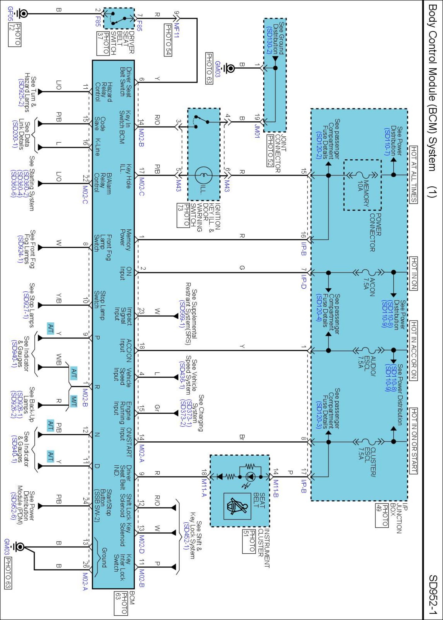 Diagram Set SD952 (Body Control Module (BCM) System)