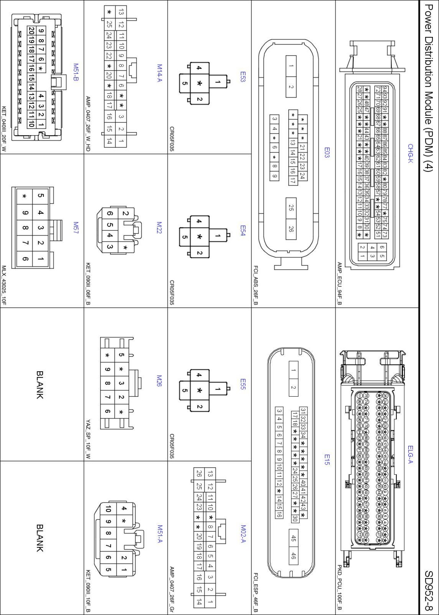 Power Distribution Module (PDM) (4) Connector Pin Outs: