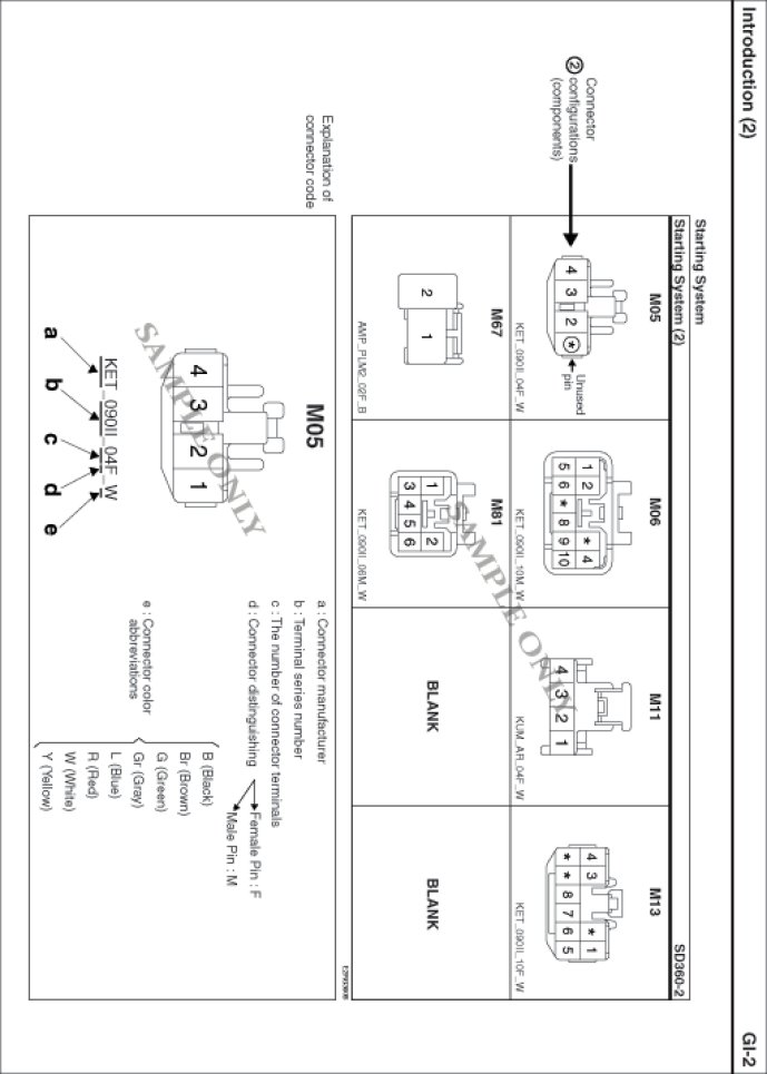 - It shows the front of the connector on the harness side when not to the harness connector. The terminal number on each connector can be obtained by following the pattern used in (5) connector view and numbering order. Unused terminals are marked with an asterisk (*).
