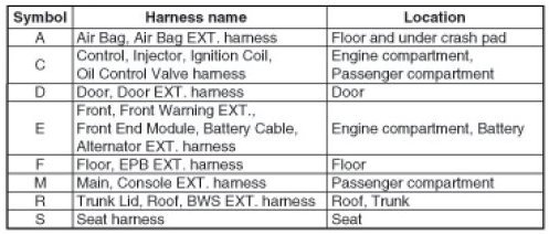 * It depends on vehicles, it is necessary to check the harness name symbol on the harness layouts for detailed symbol.