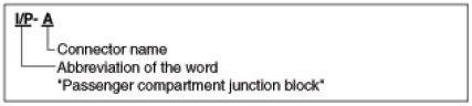 A junction block identification symbol consists of a wiring harness location classification symbol corresponding to a wiring harness location and number corresponding to the connector in the junction block.