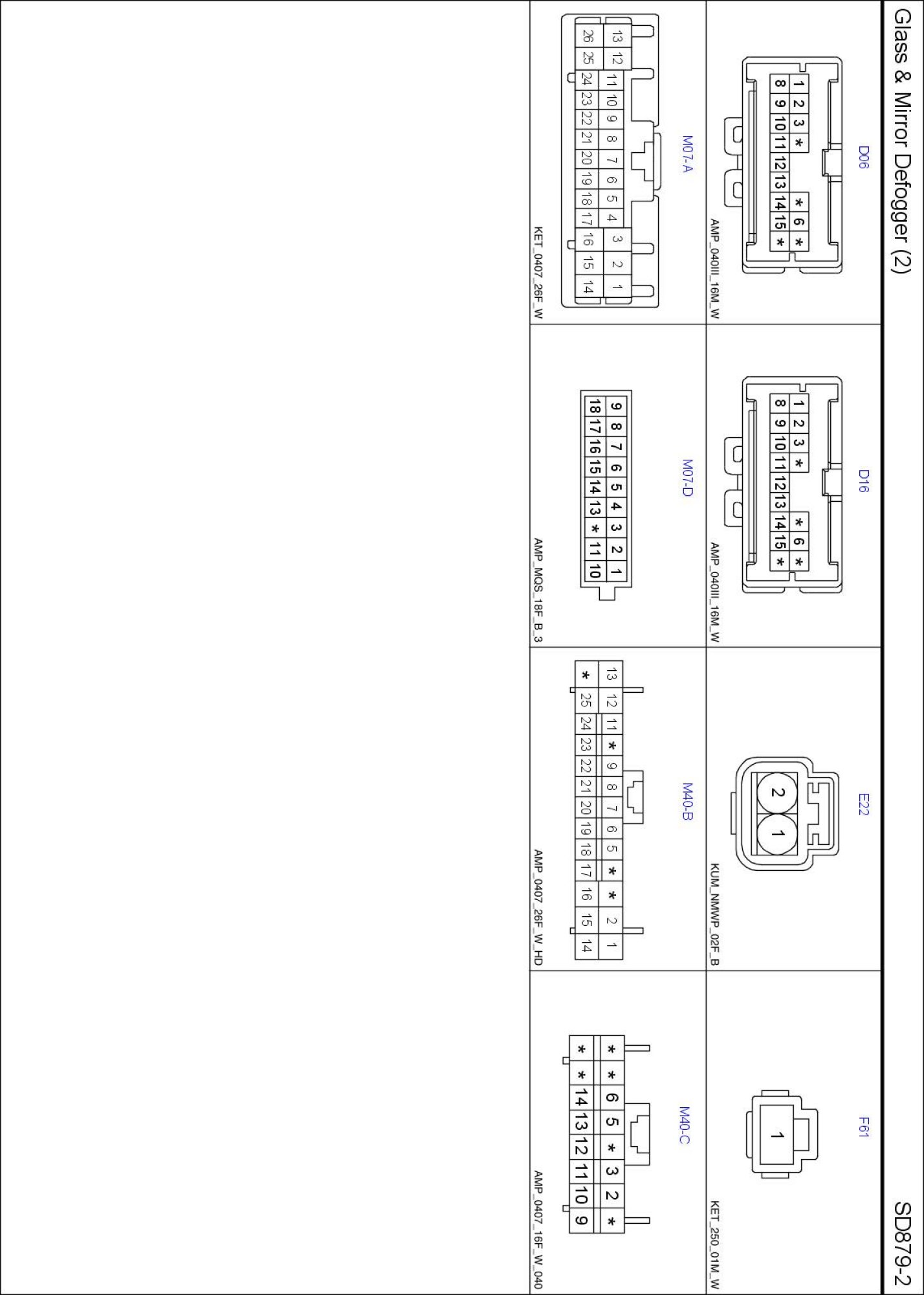 Glass & Mirror Defogger (2) Connector Pin Outs: