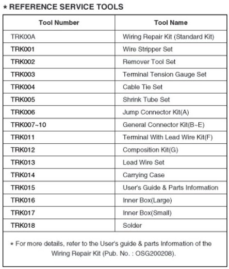 WIRING REPAIRREFERENCE SERVICE TOOLS