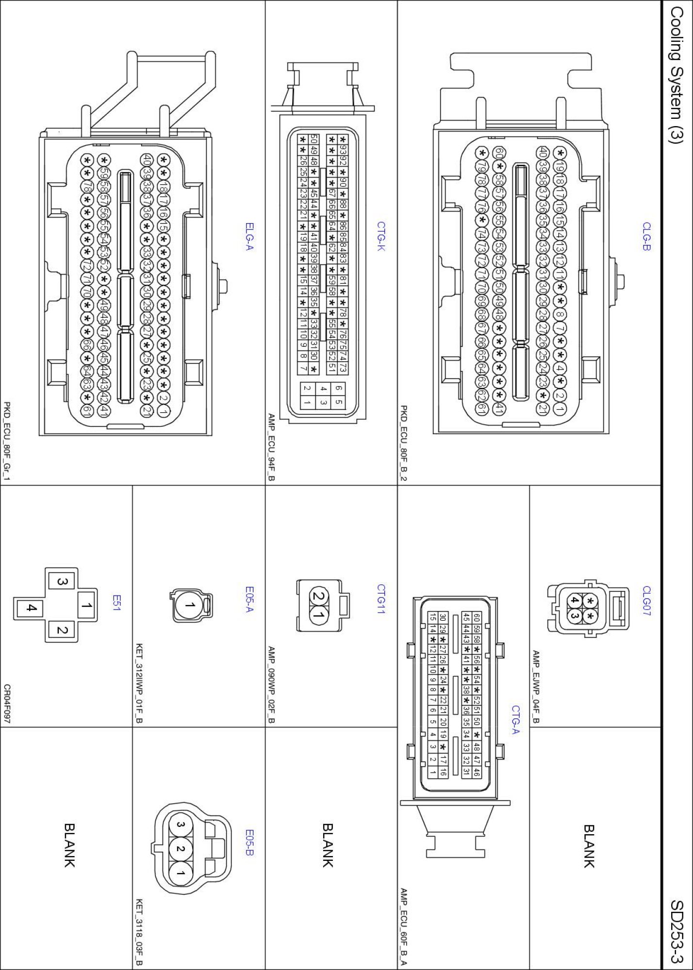 Cooling System (3) Connector Pin Outs: