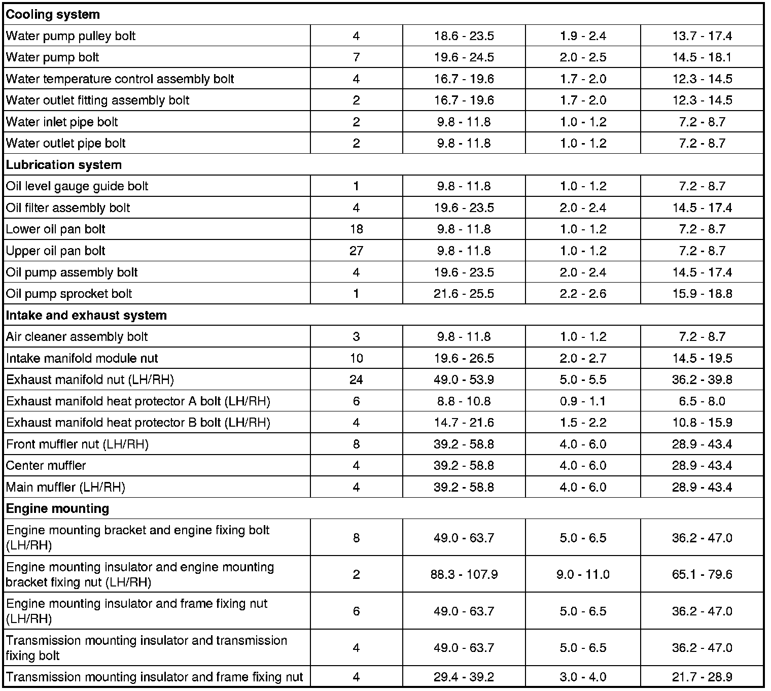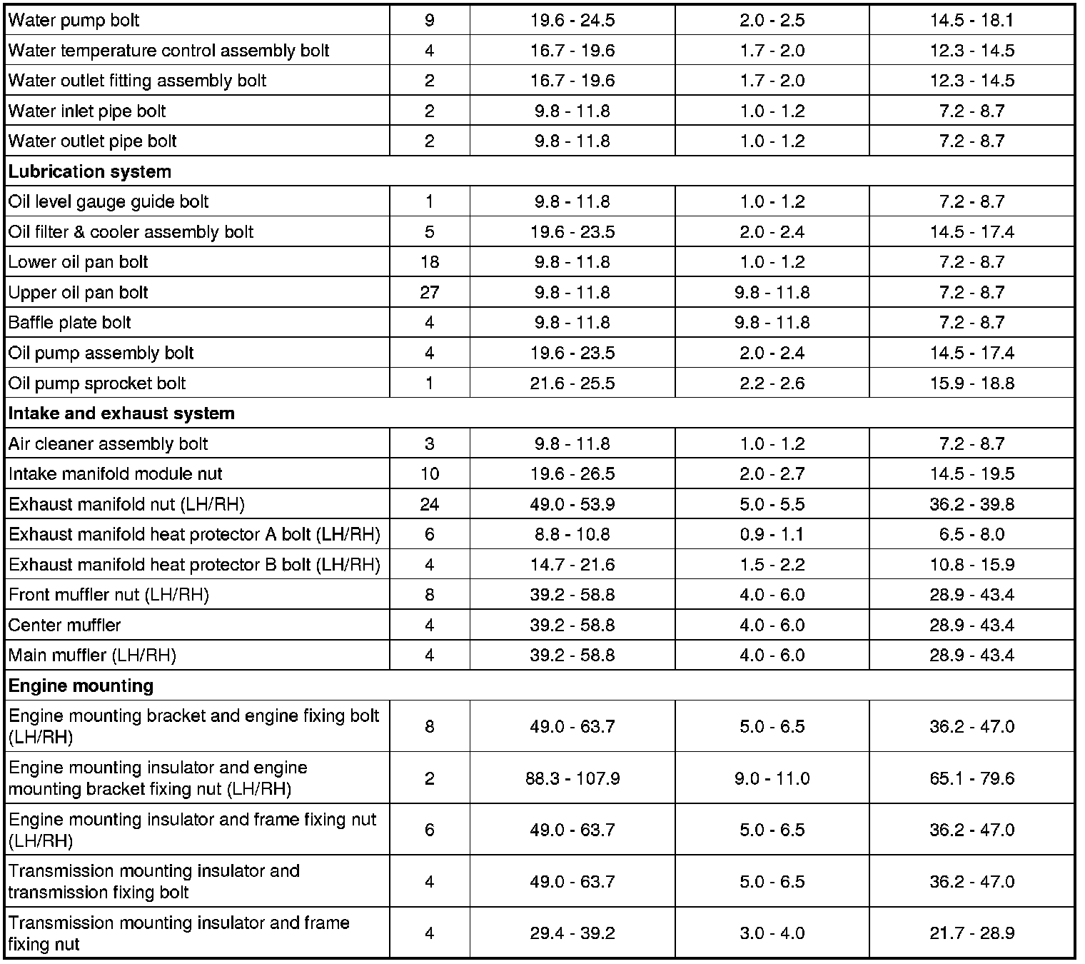 Tightening Torques
