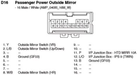 D16 Passenger Power Outside Mirror: