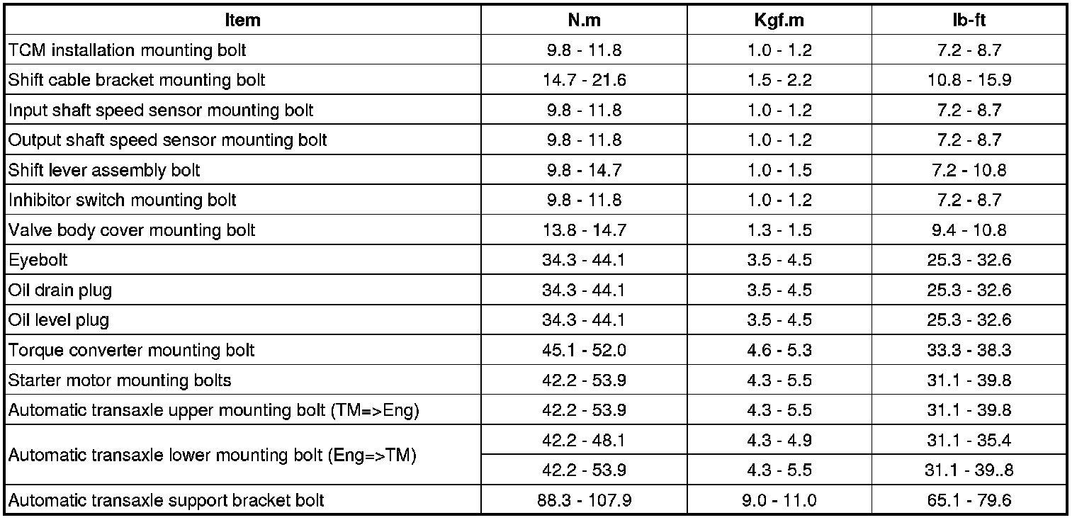 Tightening Torques