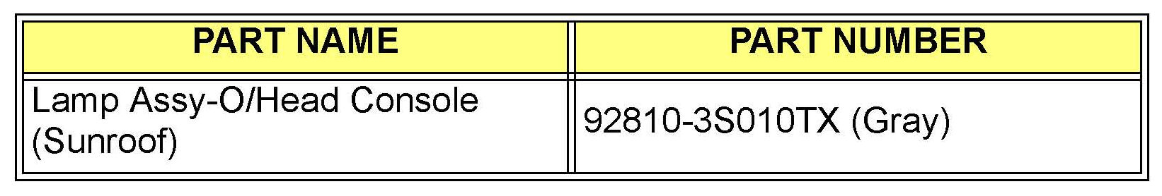 a. Inspect the original overhead console lamp assembly and check the lot number (See photo).