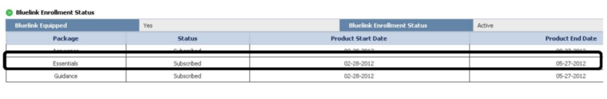1.5 A screen will pop up with the customers Blue Link account status, and the type of packages. Assure the customer has the Essential package.