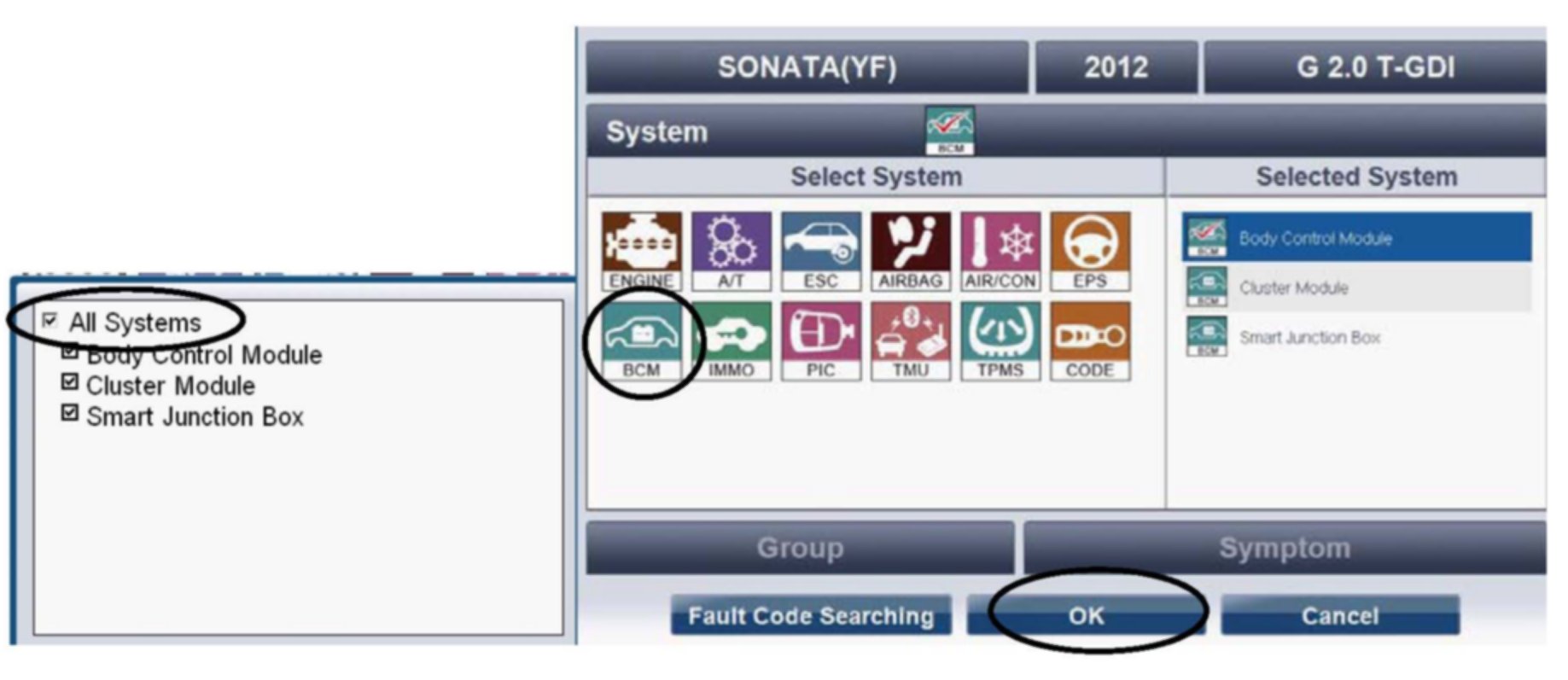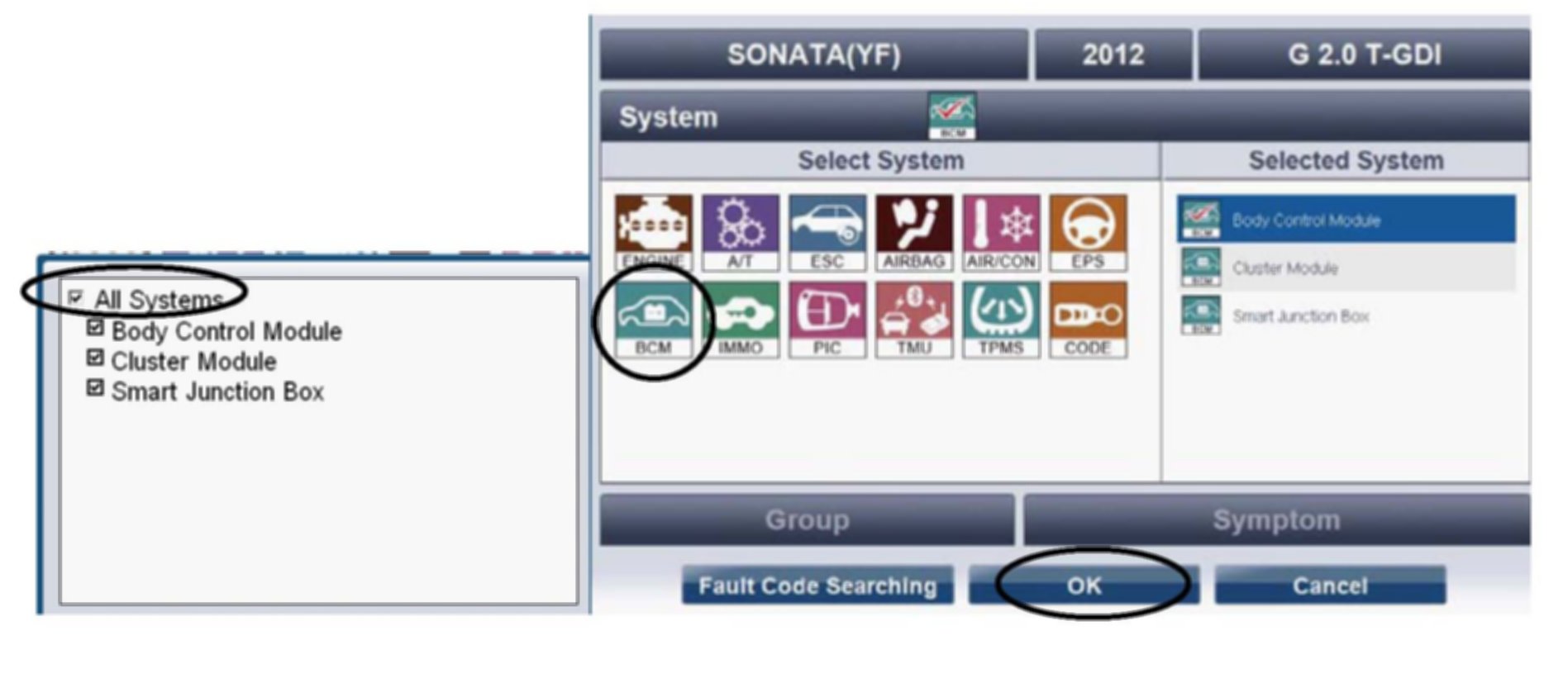 4.2 Select BCM as the system, select All Systems in the sub window, and then select OK.