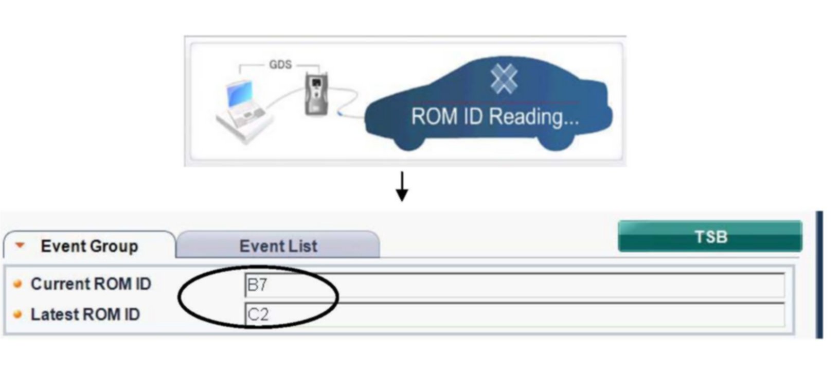 3.5 The GDS will read the ROM ID. Confirm the ROM is applicable as shown on Page 1, "ROM ID Information Table".