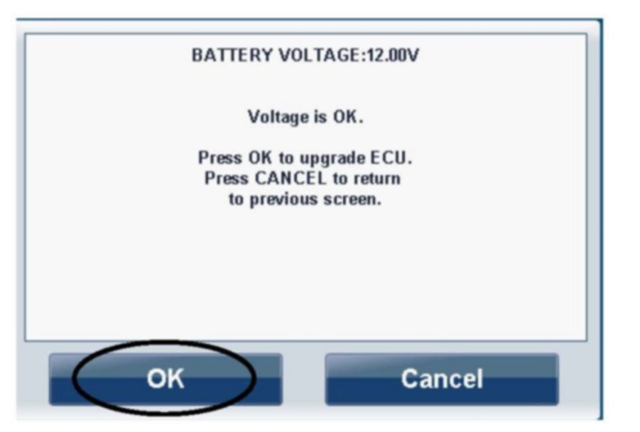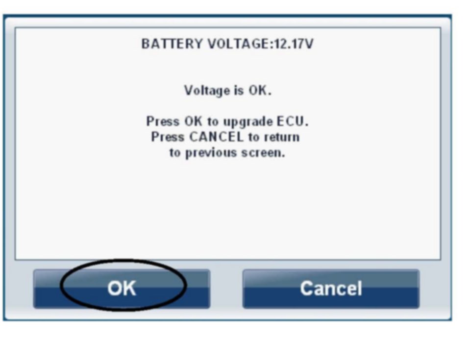 4.7 If the vehicle battery voltage is 12 volts or greater, then select OK. If not, select CANCEL and charge the vehicle battery by running the engine for 10 minutes.
