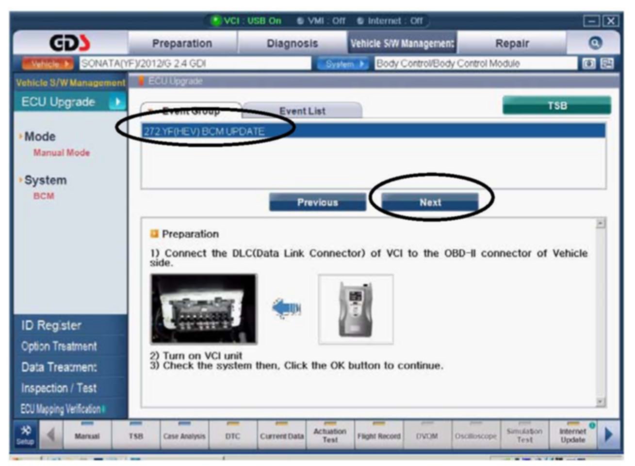 4.5 Select the reprogramming event "272 YF BCM UPDATE" and then select Next.