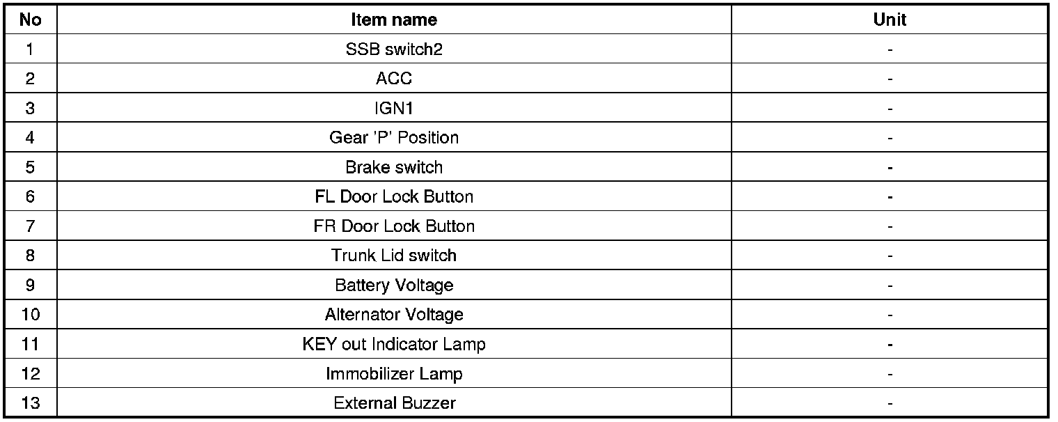 1. SMART KEY unit Input problem : switch diagnosis
