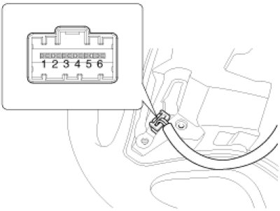 5. Remove the steering wheel remote control switch connector (A) after loosening the mounting screws.