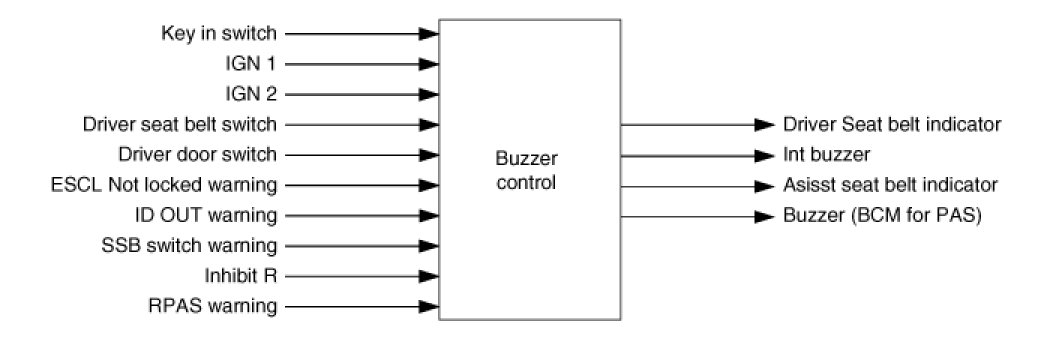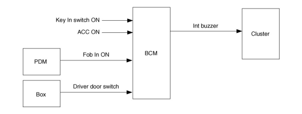 1. Int buzzer every 1sec when driver door switch is on under key in on.