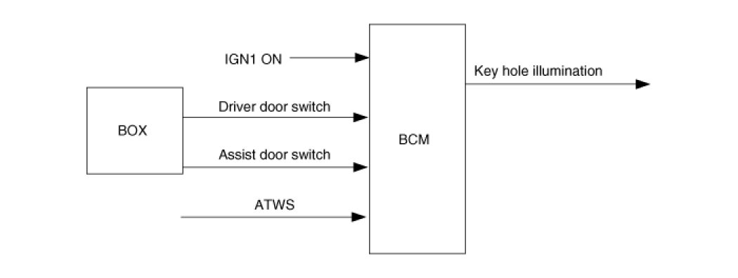 1. Key hole illumination is turned ON at IGN1 OFF and driver door switch(or assist door switch) OPEN.