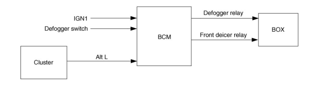 3. Defogger relay & Front deicer relay is turned OFF if Alt L OFF or IGN1 OFF during defogger relay ON.