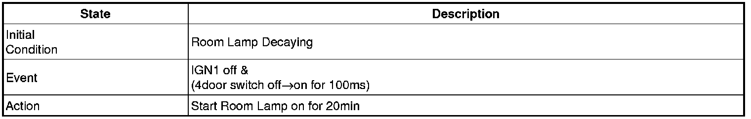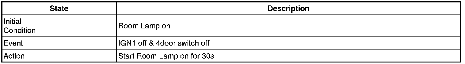 - 4 Door in closed IGN1 off & (Key in -> Key out): 30-second delay will be lights out.