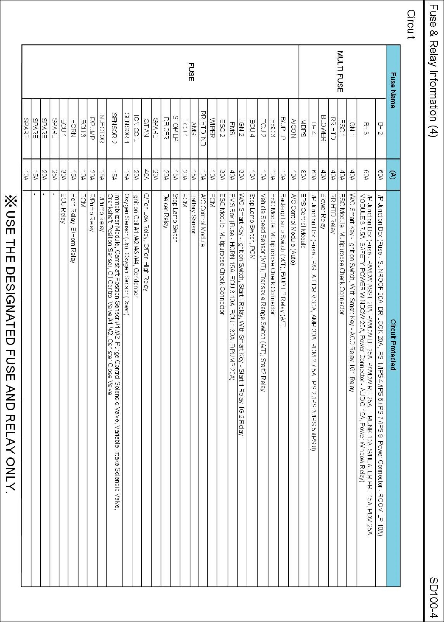 E/R Fuse & Relay Box Circuit Details: