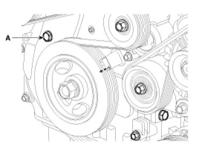 (5) Remove the service hole bolt(A) of the timing chain cover.