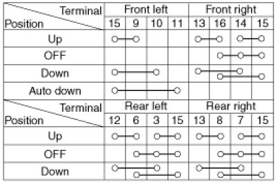 4. Check for continuity between the terminals in each switch position according to the table. If the continuity condition is not normal, replace the switch.