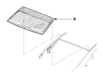 5. Paste the rear window glass molding (A), and then install the rear window glass (B).