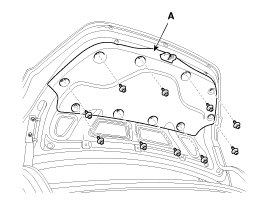 1. Detach the clips, then remove the trunk lid trim (A).