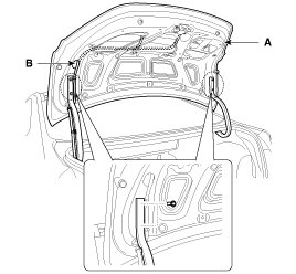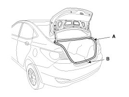 1. Remove the trunk lid weatherstrip (A).
