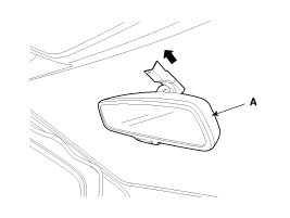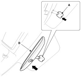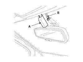1. Push the inside rear view mirror base (A) up to remove the inside rear view mirror assembly (B).