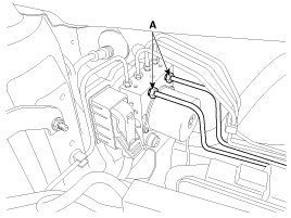 7. Disconnect the brake tubes (A) from the HECU by unlocking the nuts counterclockwise with a spanner.