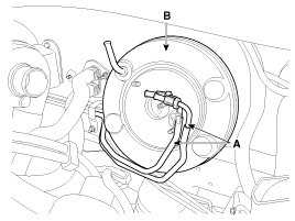 3. Disconnect the vacuum hose (A) from the brake booster.