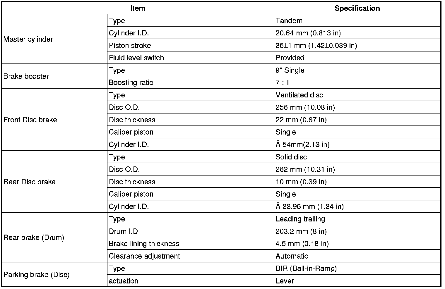 Brakes and Traction Control: Specifications