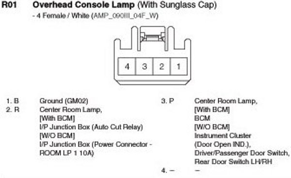 R01 Overhead Console Lamp (With Sunglass Cap):
