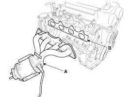 7. Remove the exhaust manifold (A).