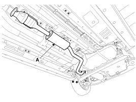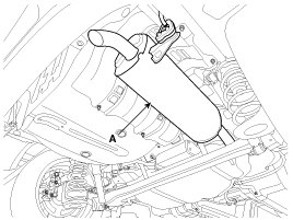 4. Remove the catalytic converter & center muffler assembly (A).