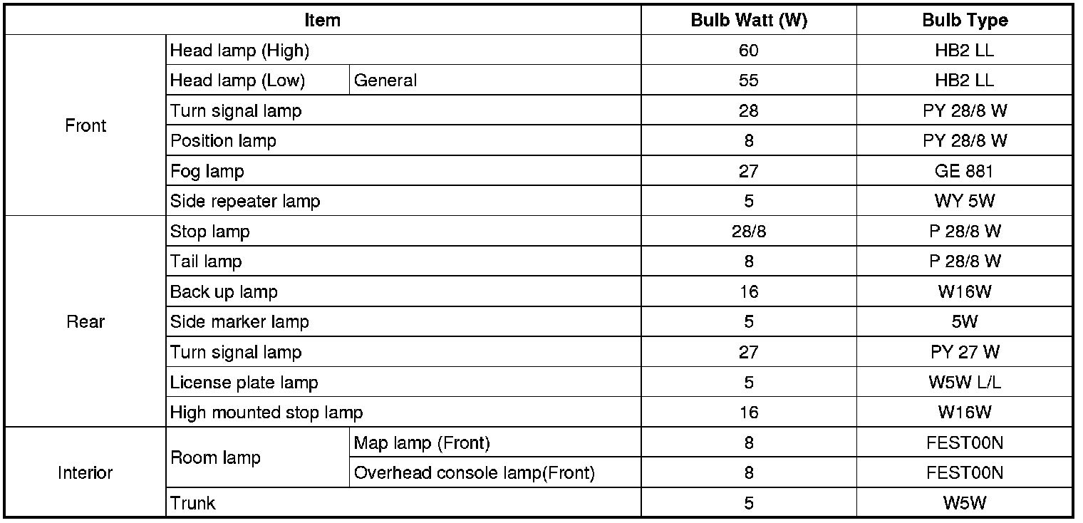 Lighting and Horns: Specifications