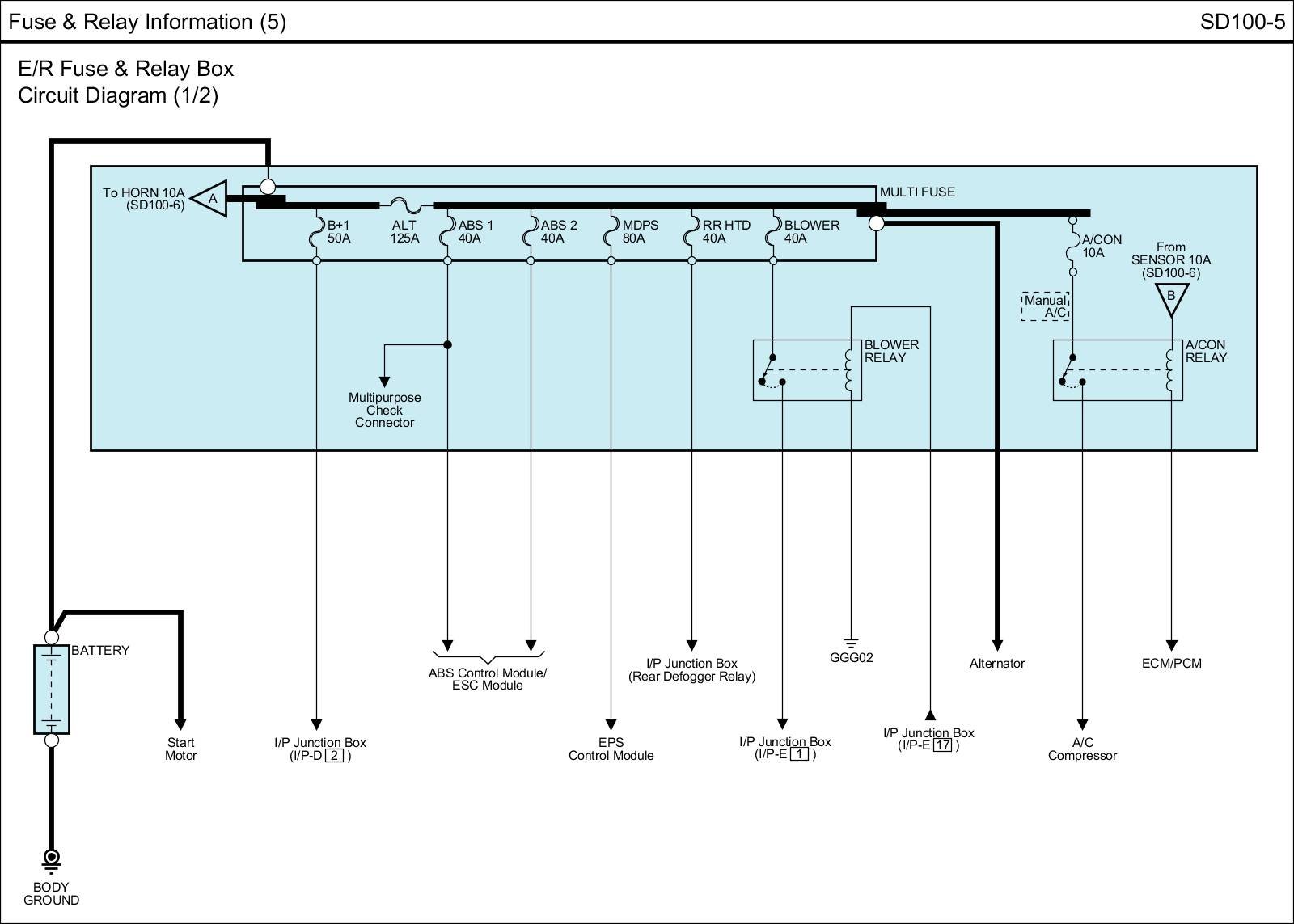 E/R Fuse & Relay Box Circuit Details: