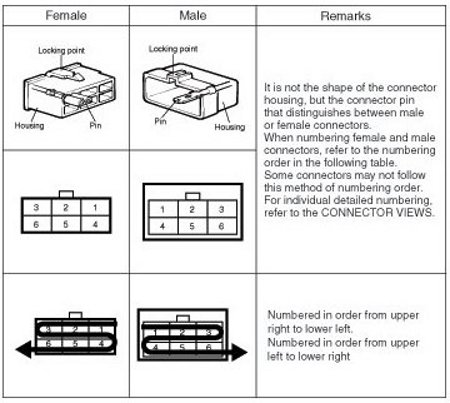 - To make it easy to distinguish connectors, the connector in the picture is indicated being installed in the vehicle.