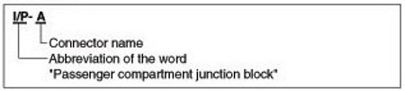 A junction block identification symbol consists of a wiring harness location classification symbol corresponding to a wiring harness location and number corresponding to the connector in the junction block.