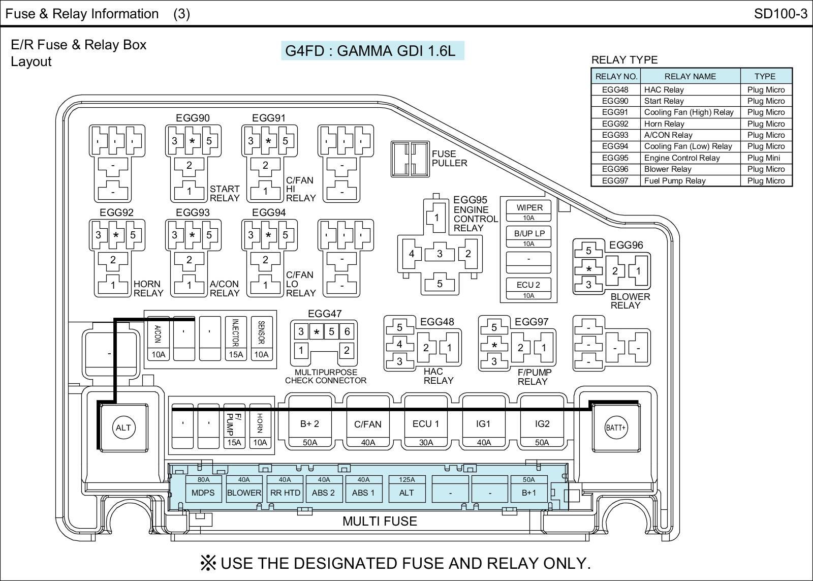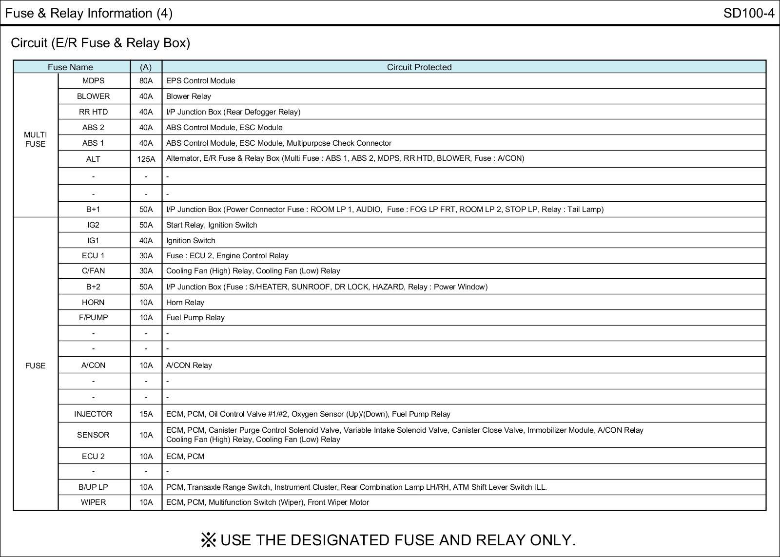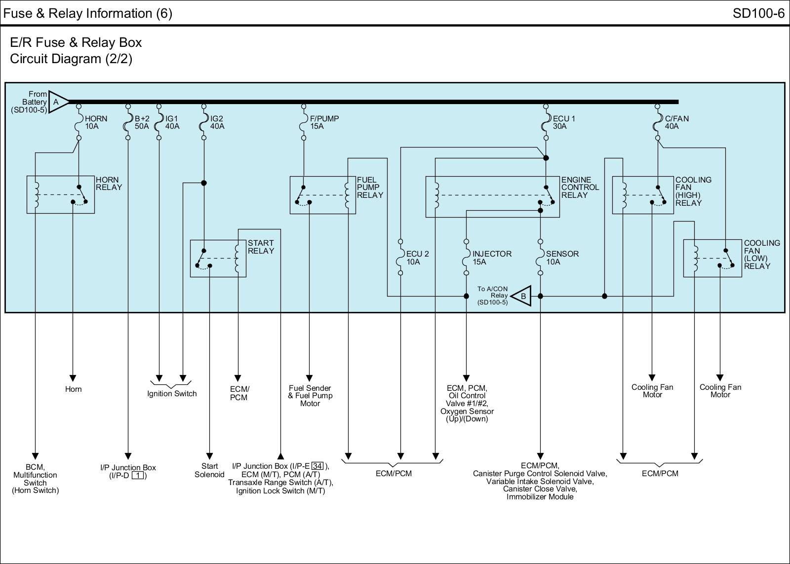 E/R Fuse & Relay Box Circuit Details: