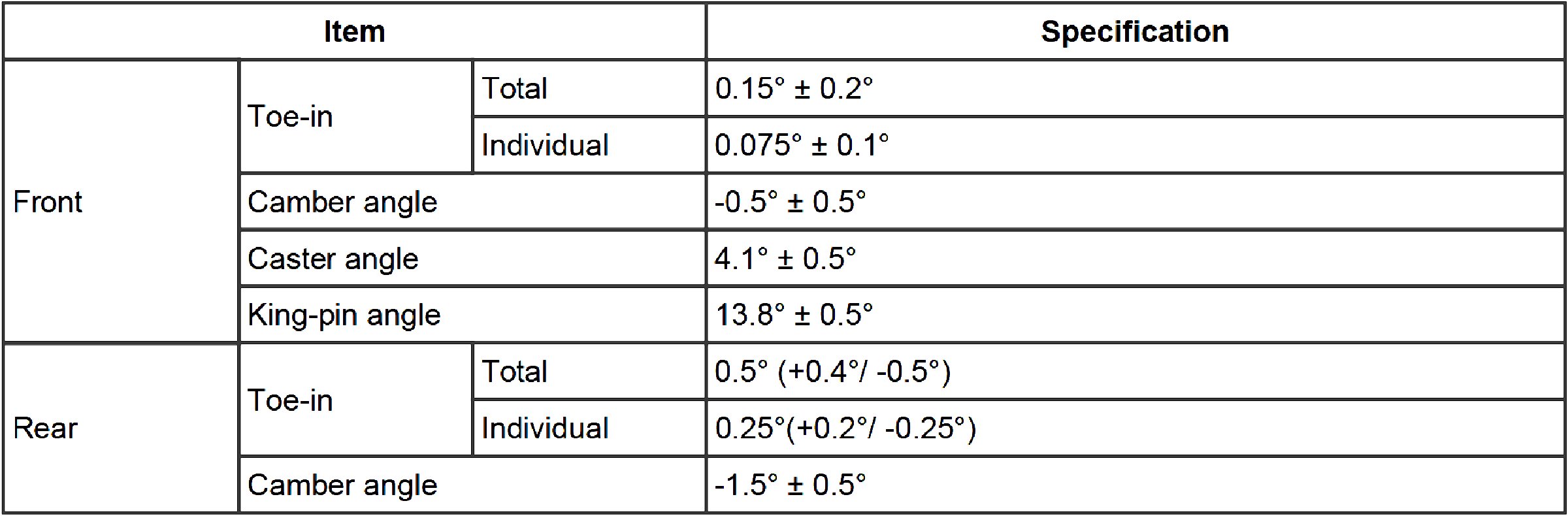 Wheel Alignment Specifications